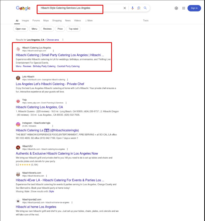 Creating engaging content is one thing—making it rank #1 is another. For Hibachi Catering LA, I provided SEO-driven website copy that elevated their entire site and service pages to dominate search results.